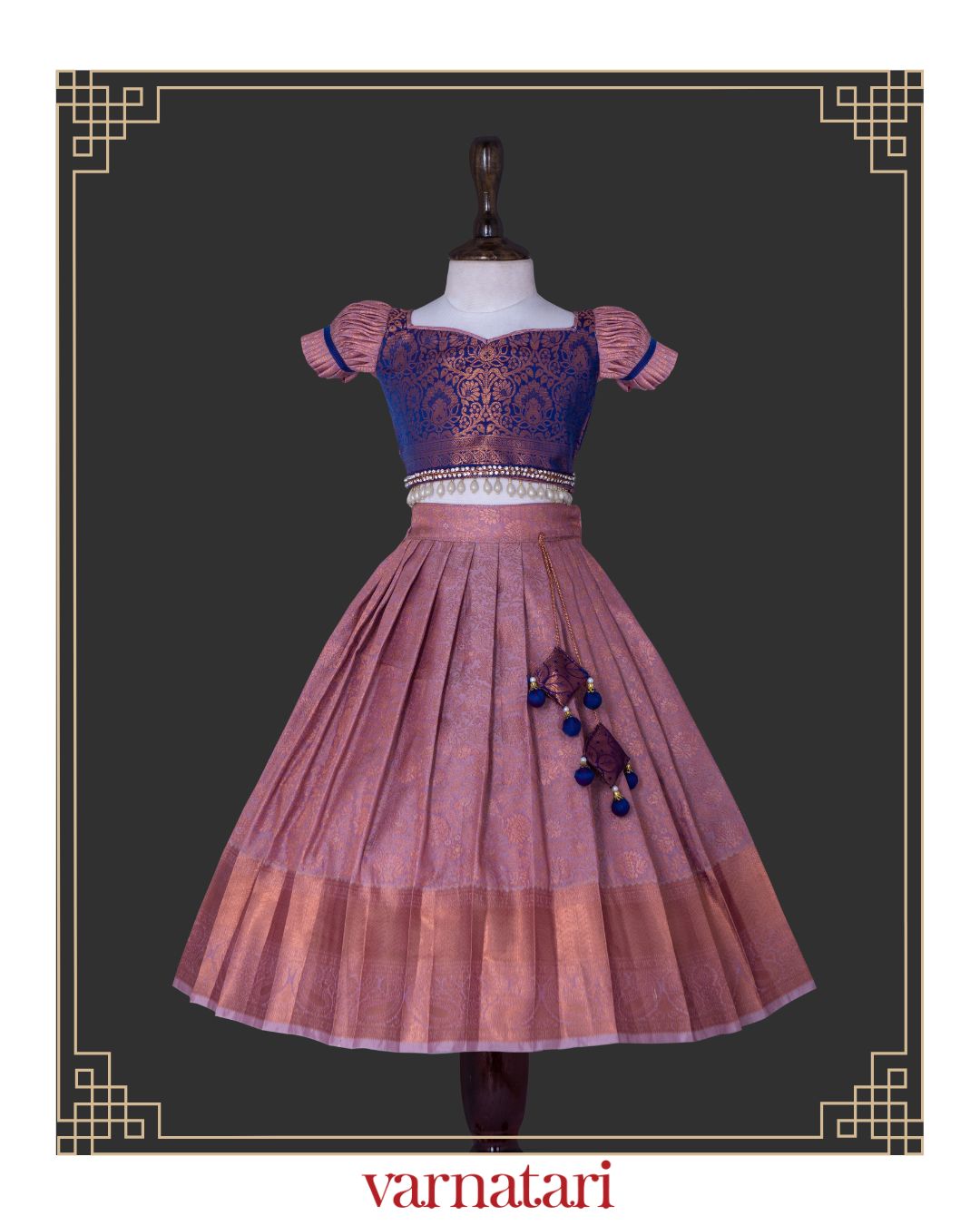 ₹2,799.00ROYAL BLUE AND ROSE GOLD PATTU PAVADAI SET