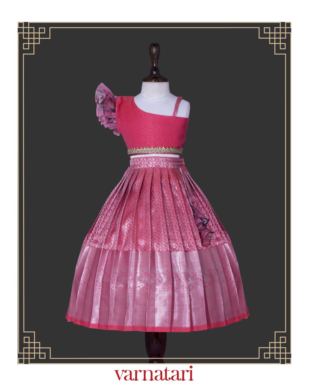 ₹2,799.00FRENCH ROSE PINK AND SILVER PATTU PAVADAI SET
