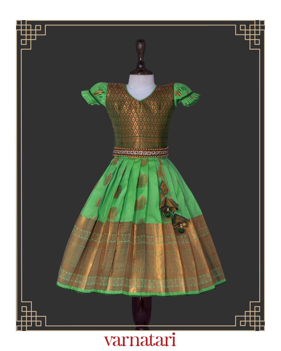 SPRING GREEN AND DARK GREEN PATTU PAVADAI SET