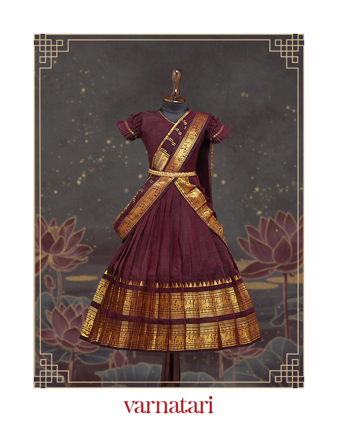 - Burgundy and Black Ethnic frock and gold kanchi border
