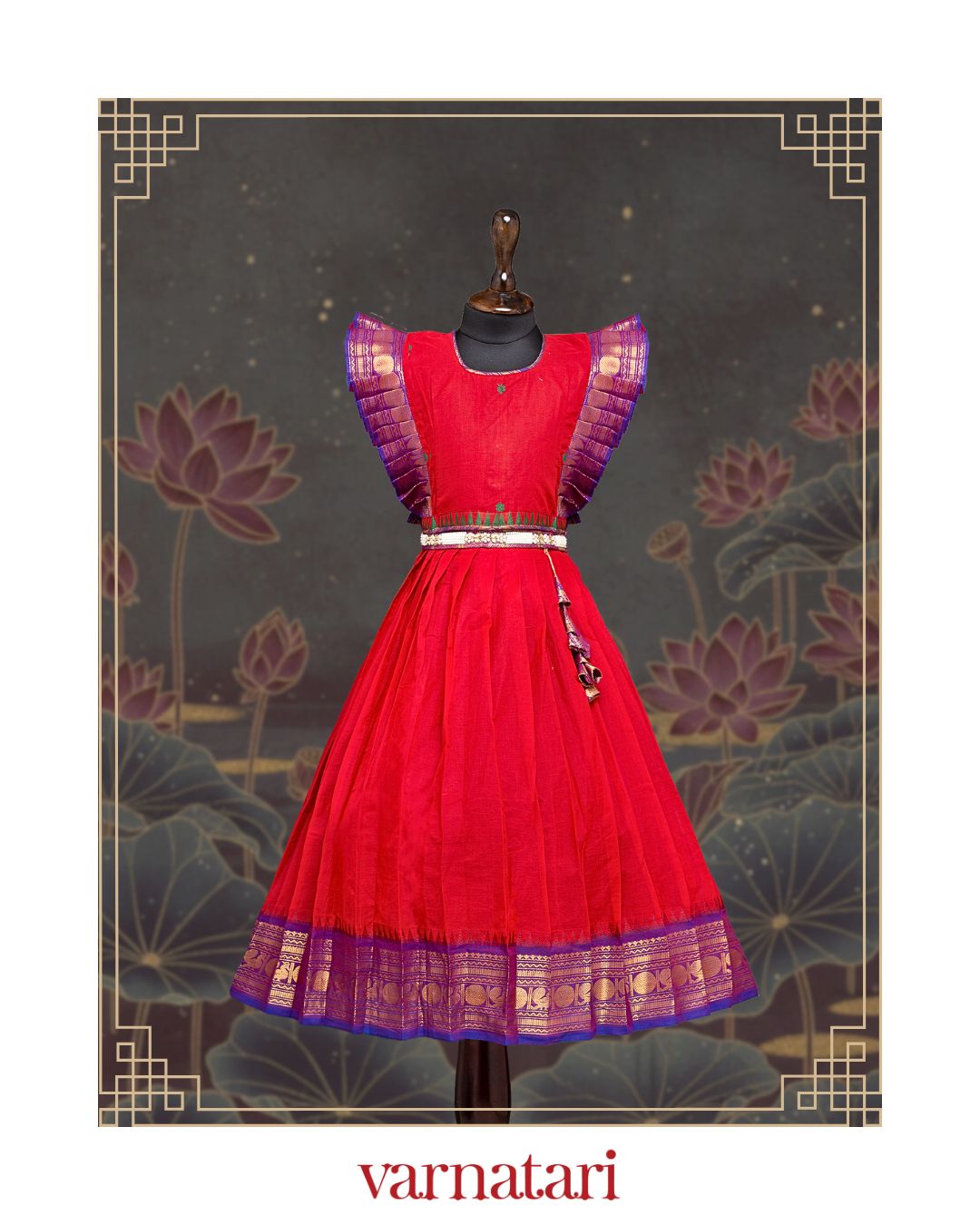 - Red and Blue Ethnic frock and gold kanchi border