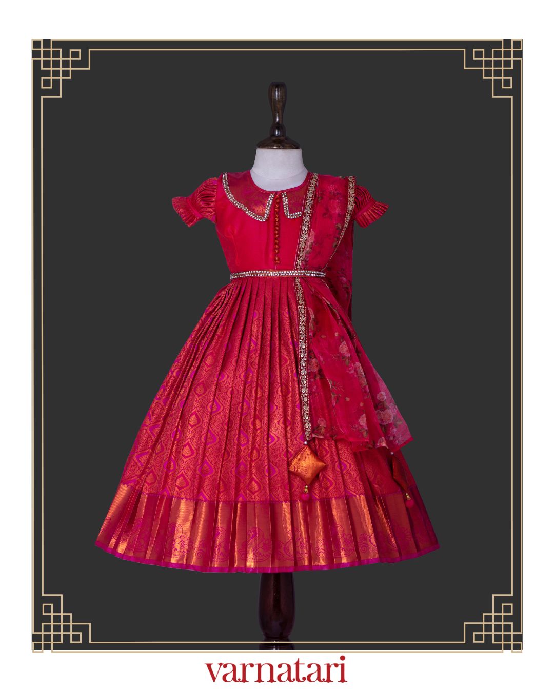 - Closure : Frock – back hooks, Dhupatta – Pre-pleated with press buttons
