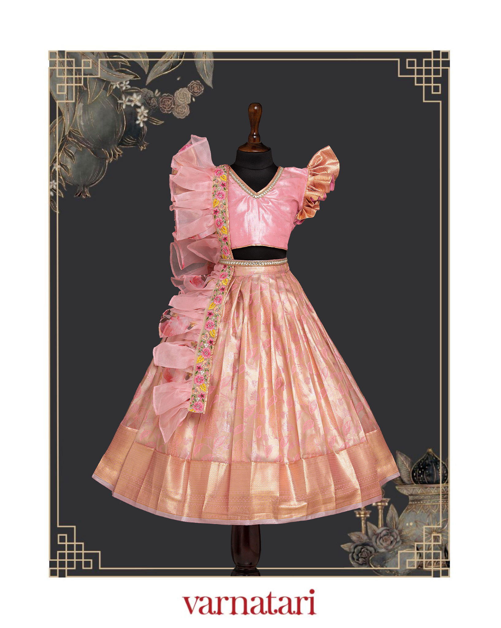 BABY PINK AND GOLD ETHNIC SILK LEHENGA SET