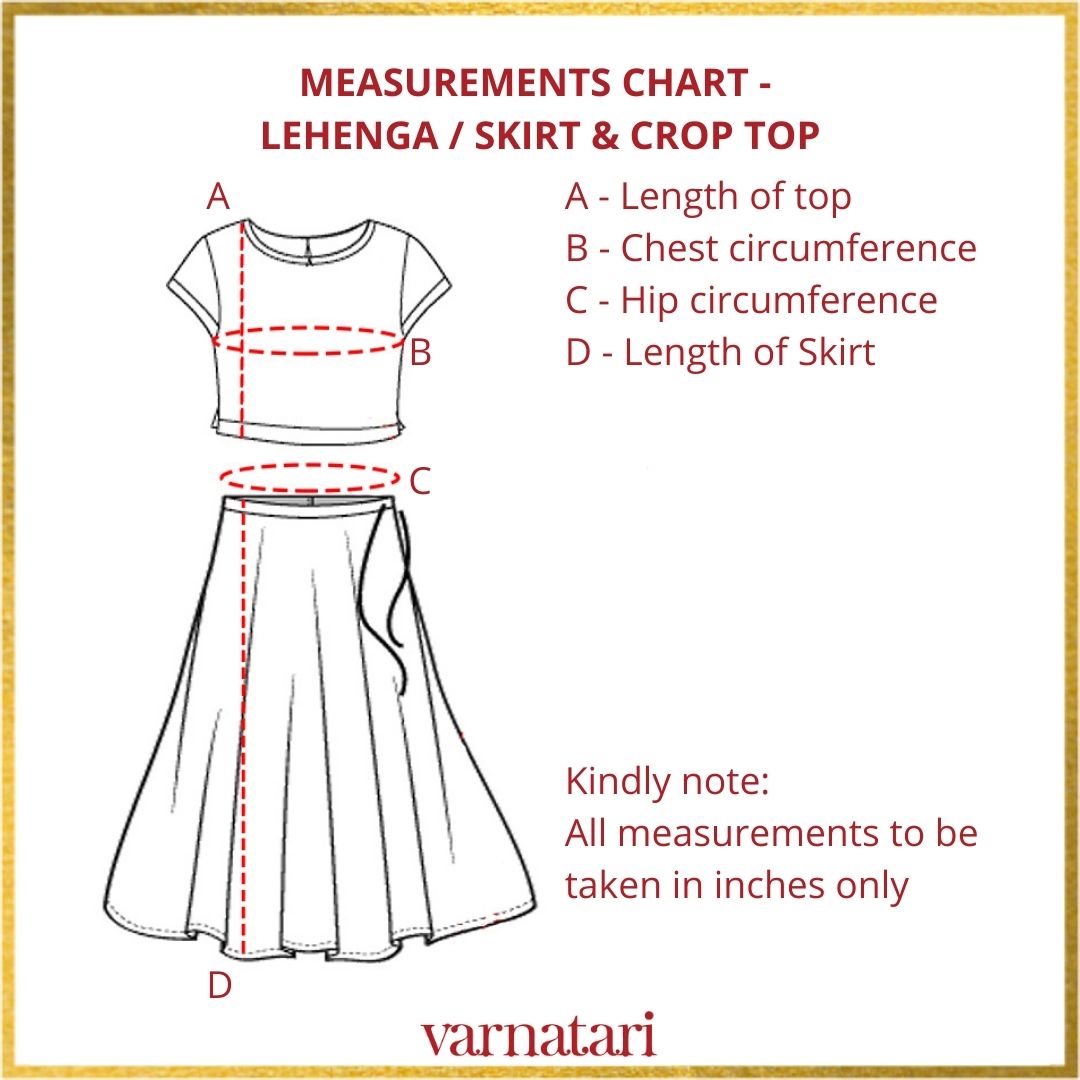 - Closure : Top – back hooks, Skirt – elastic with side hook, Dhupatta – Pre-pleated with press buttons